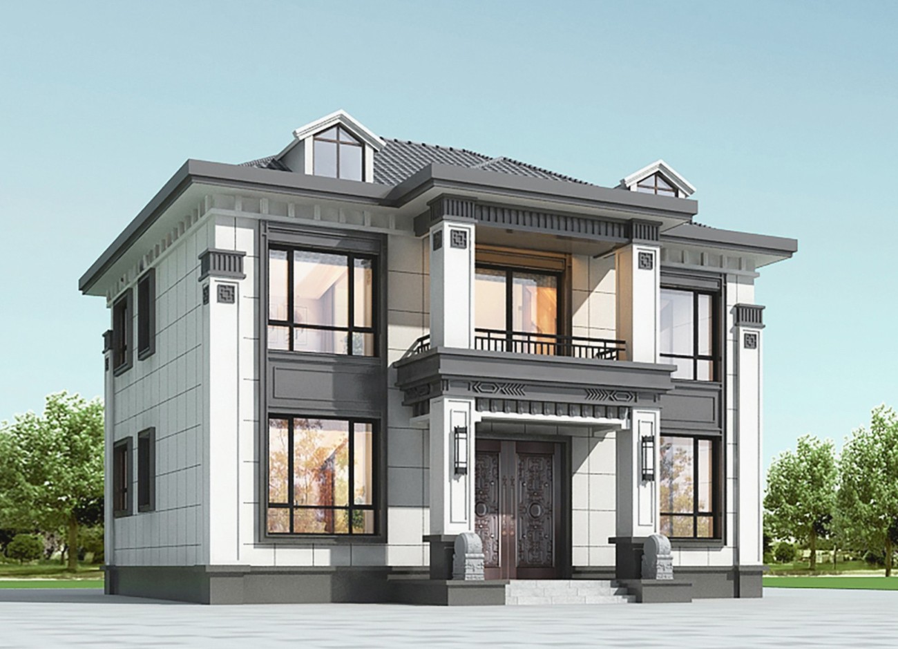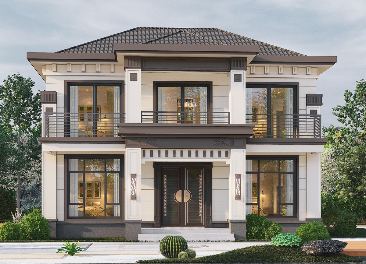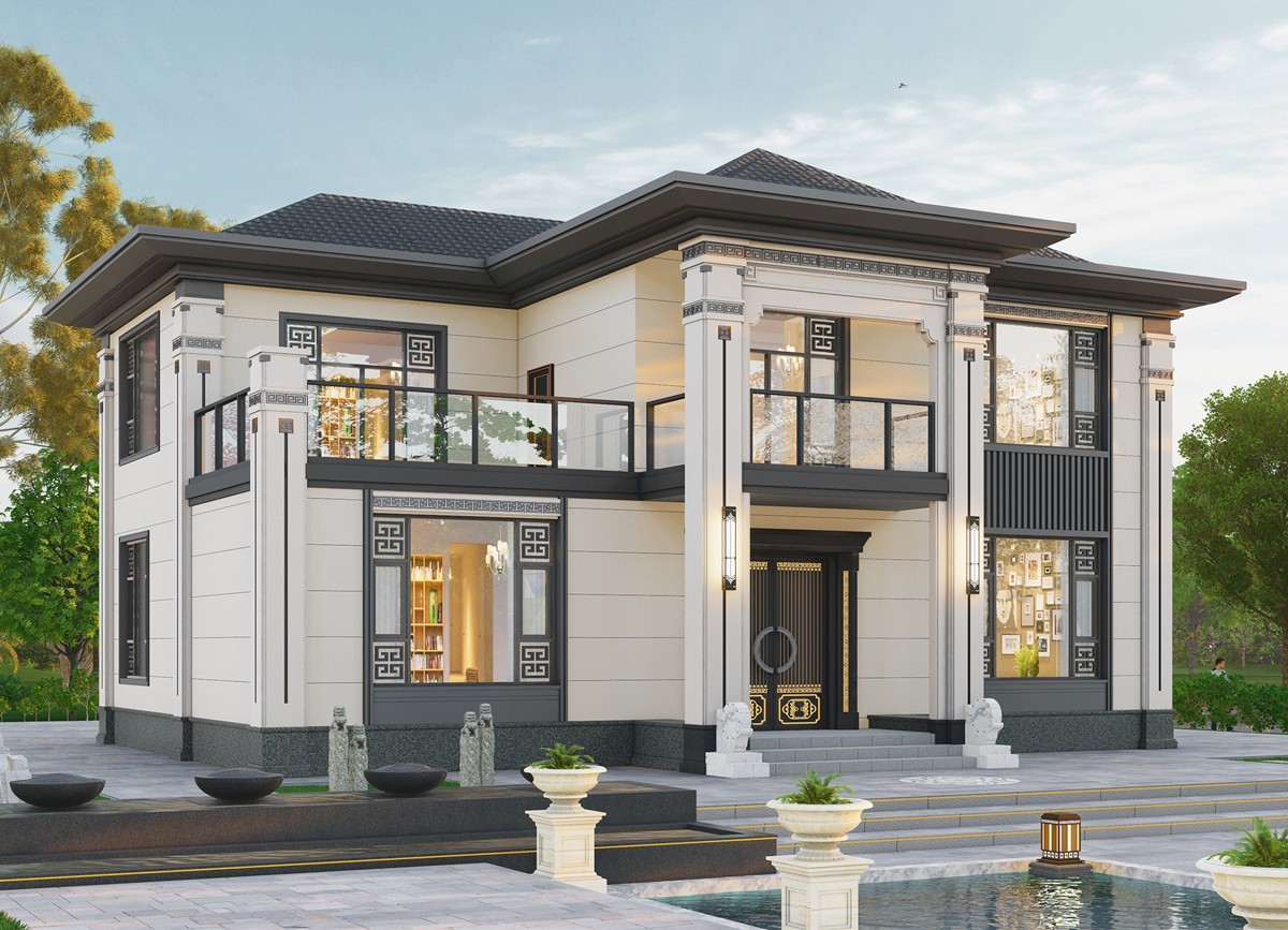 钦州005 两层新中式(11.36x11.76米)-【易设计】